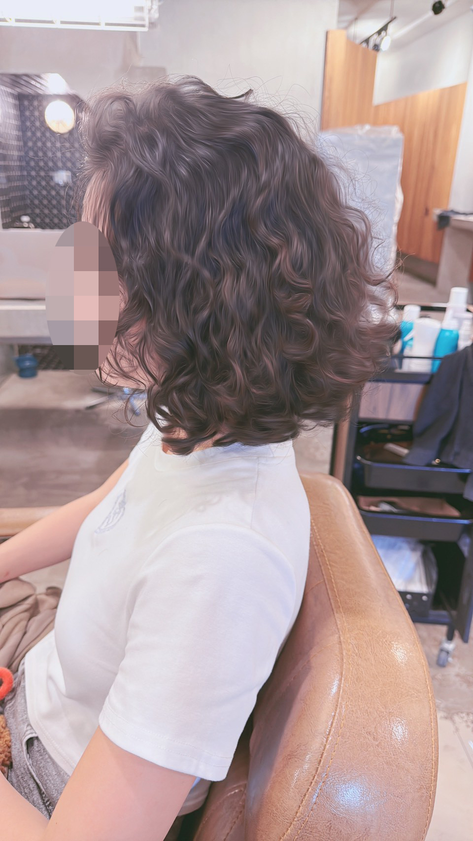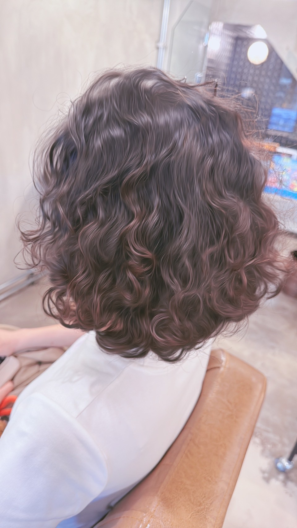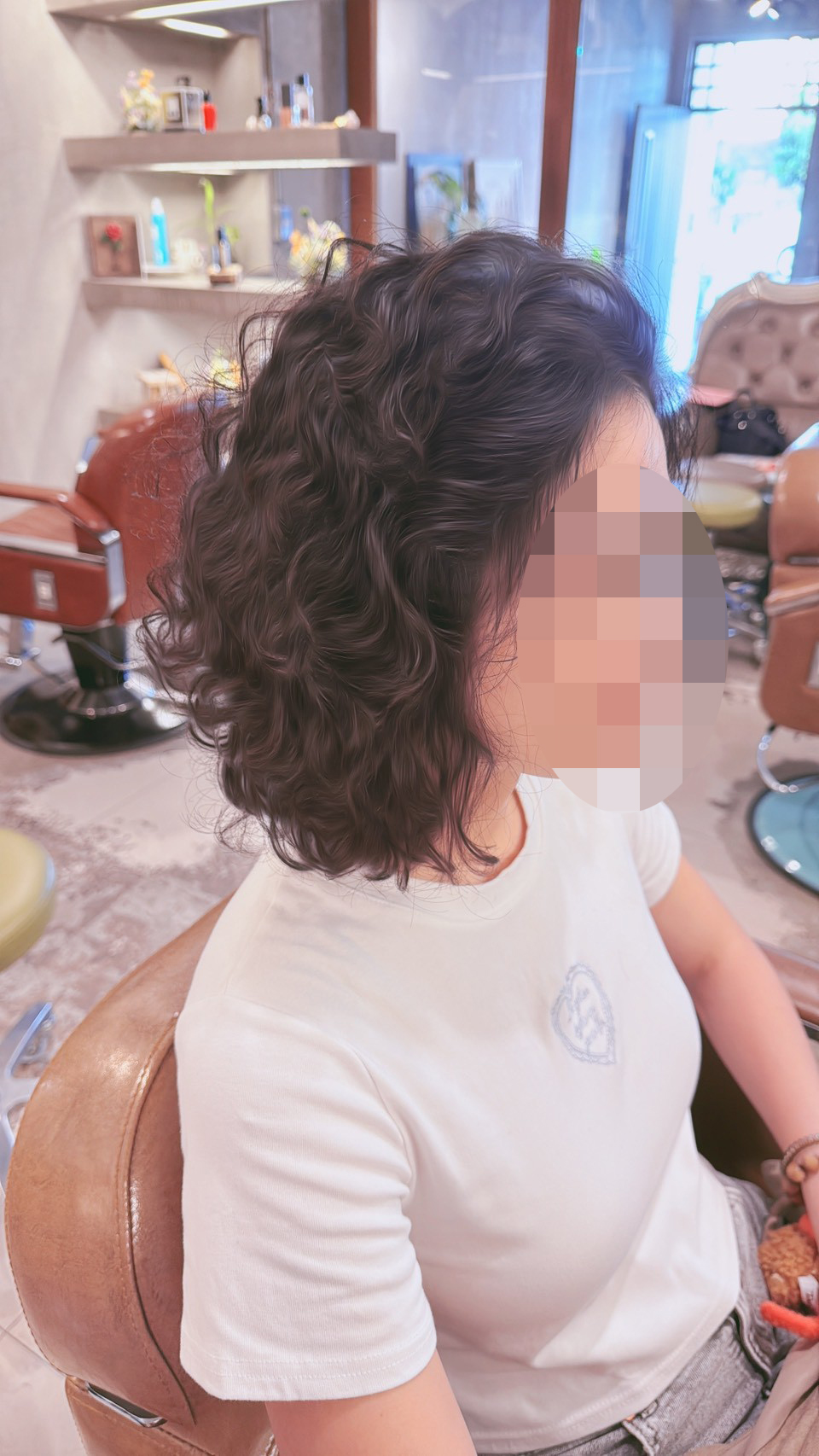 這次燙的是捲度很明顯的羊毛捲,整體看起來蓬鬆有型,不但顯得臉小,整個人也多了幾分精神和時尚感,跟她原本的氣質非常融洽。連我這個平常對髮型沒什麼研究的大叔,都忍不住多看幾眼,覺得這個冒險決定做得很值得。