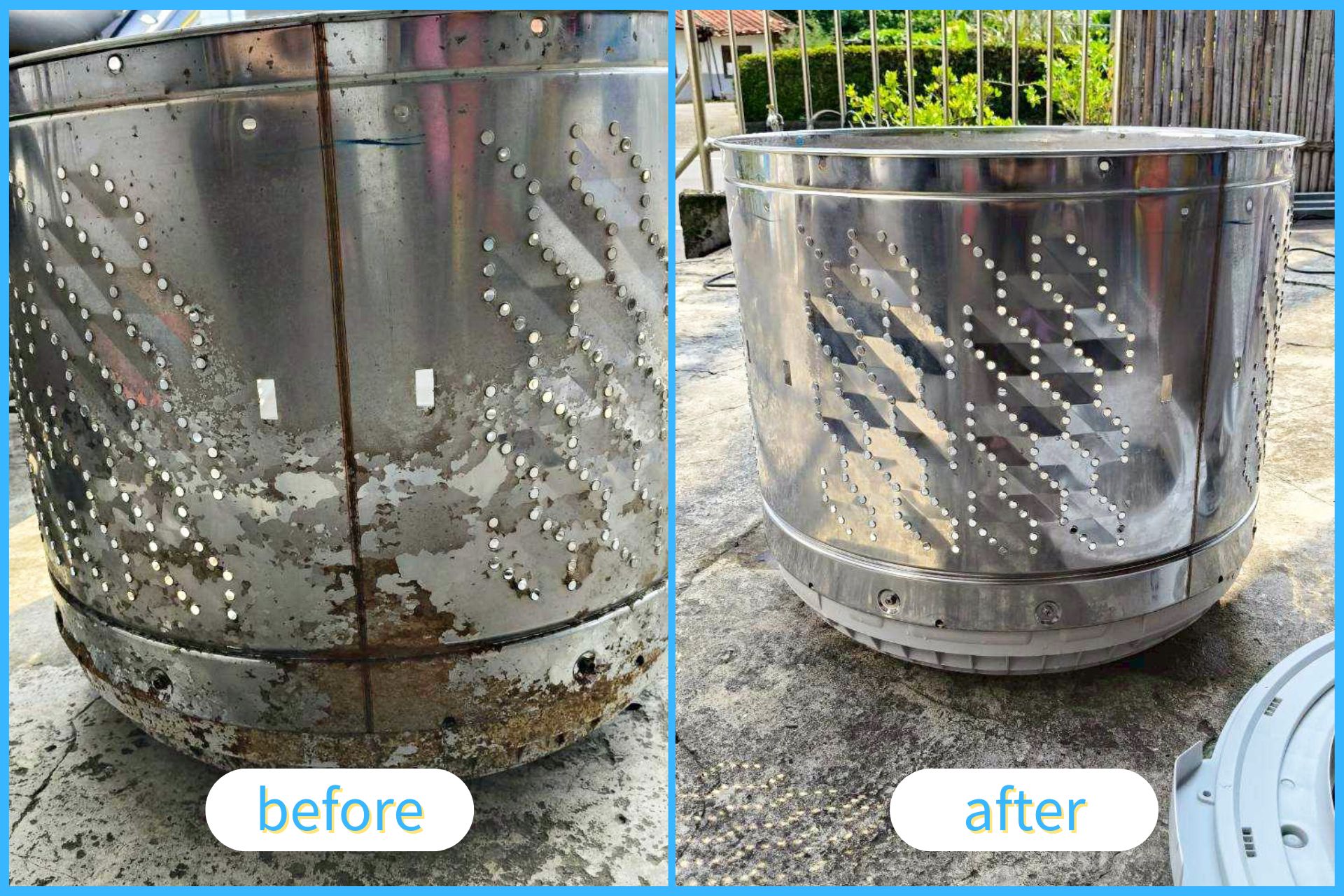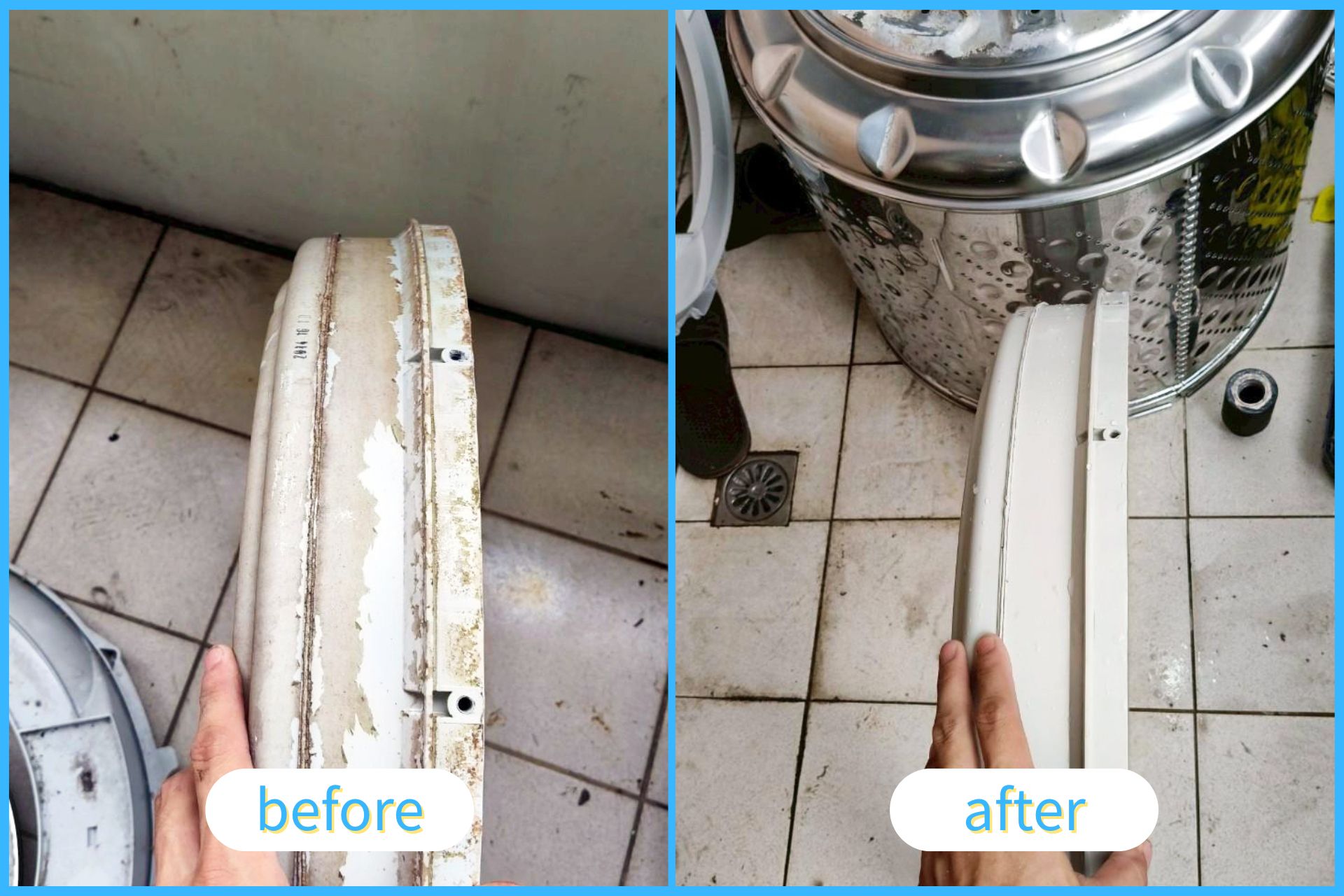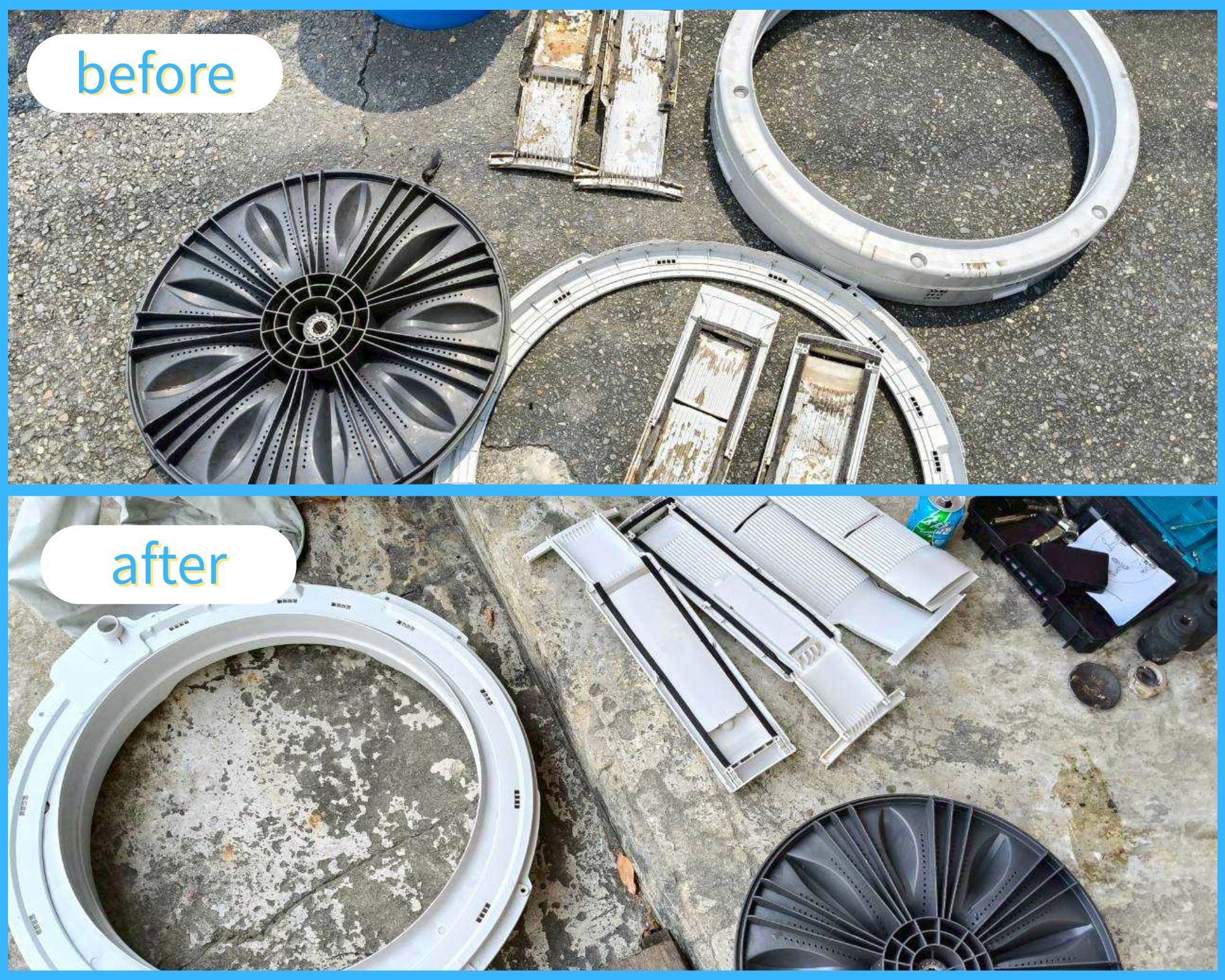 還好倍亮的師傅真的很專業,整個拆洗完後,內桶亮到會反光,真的像新的一樣,不然這一台大概也只能報廢,想想買新的也要萬元,清一清真的有賺到!