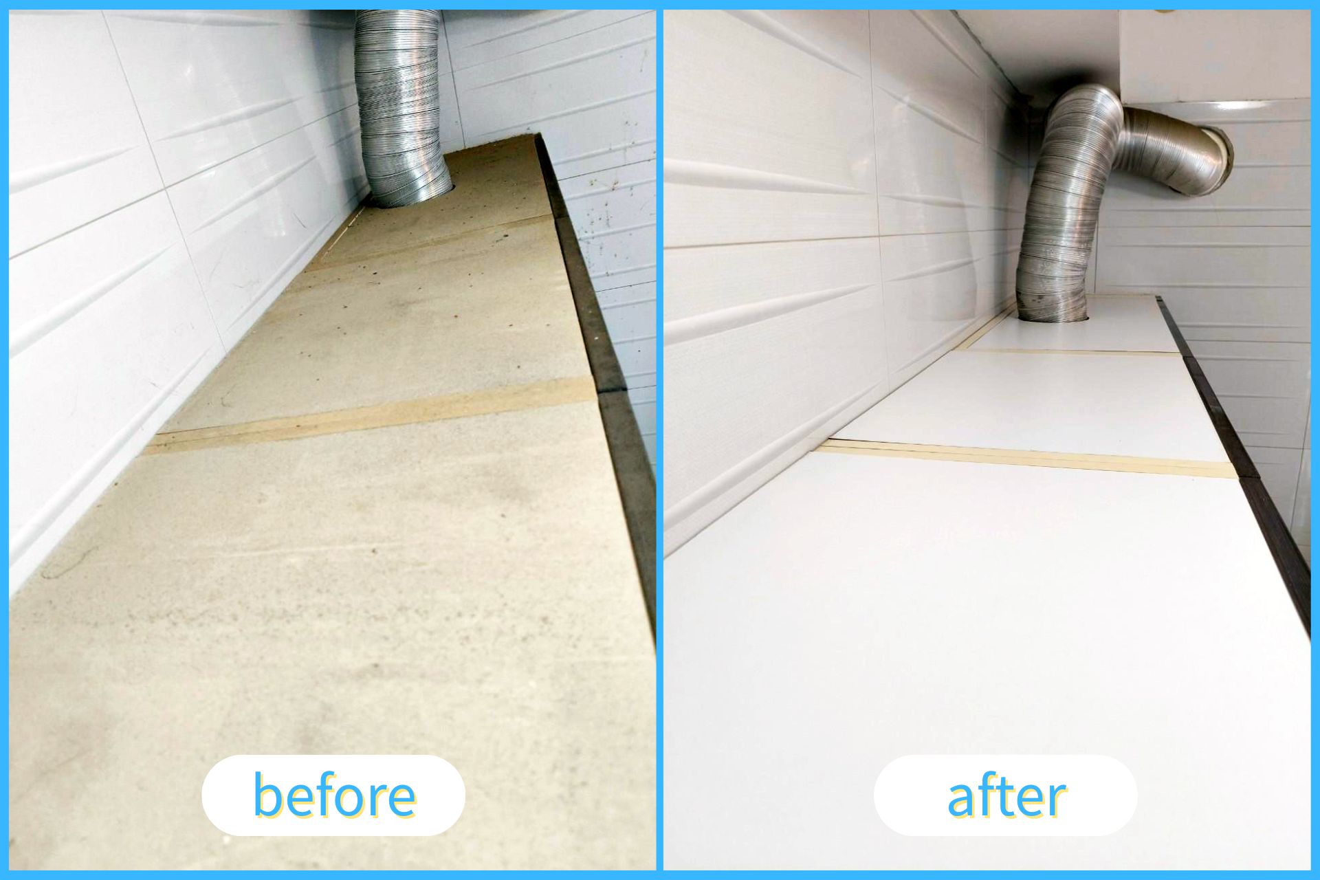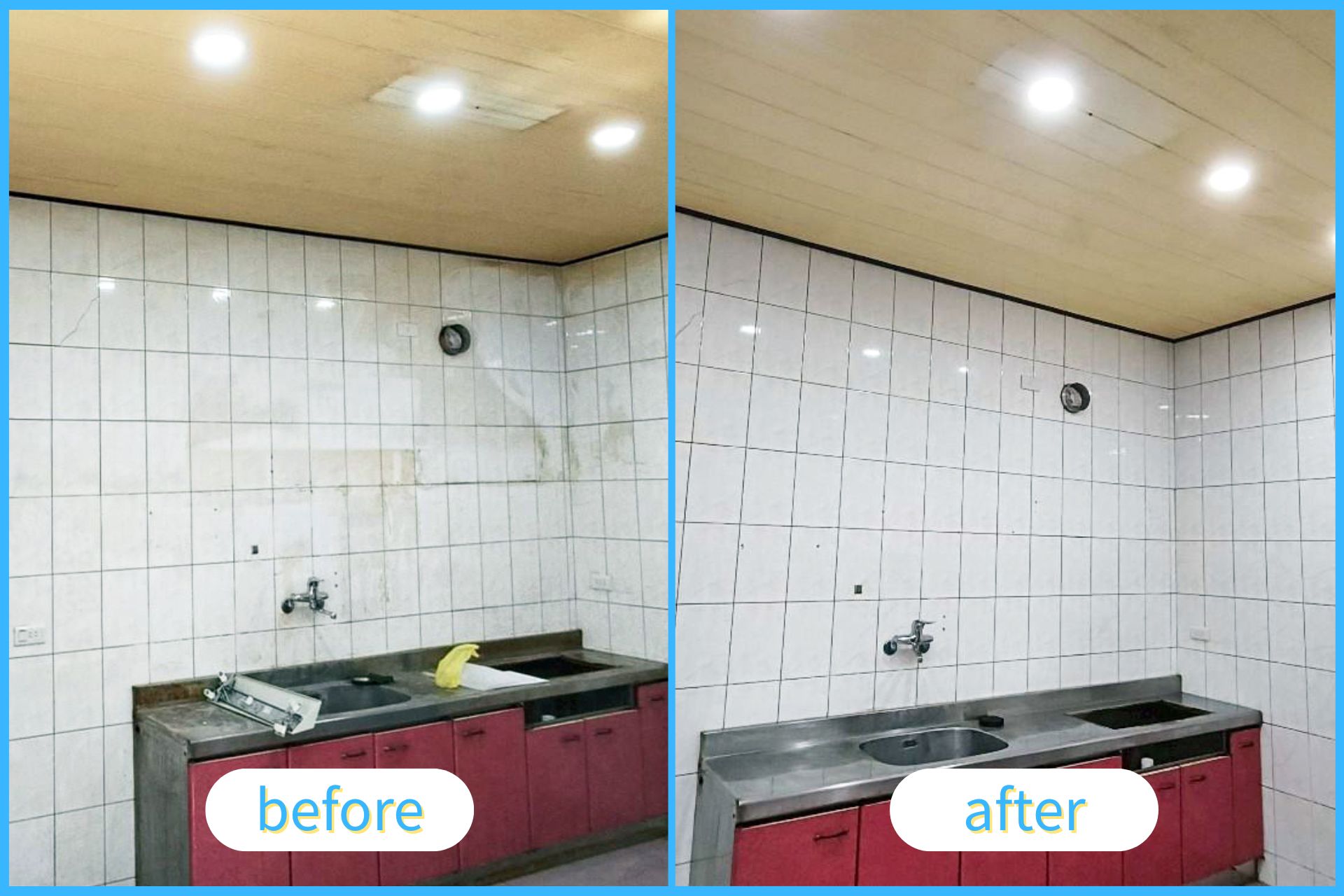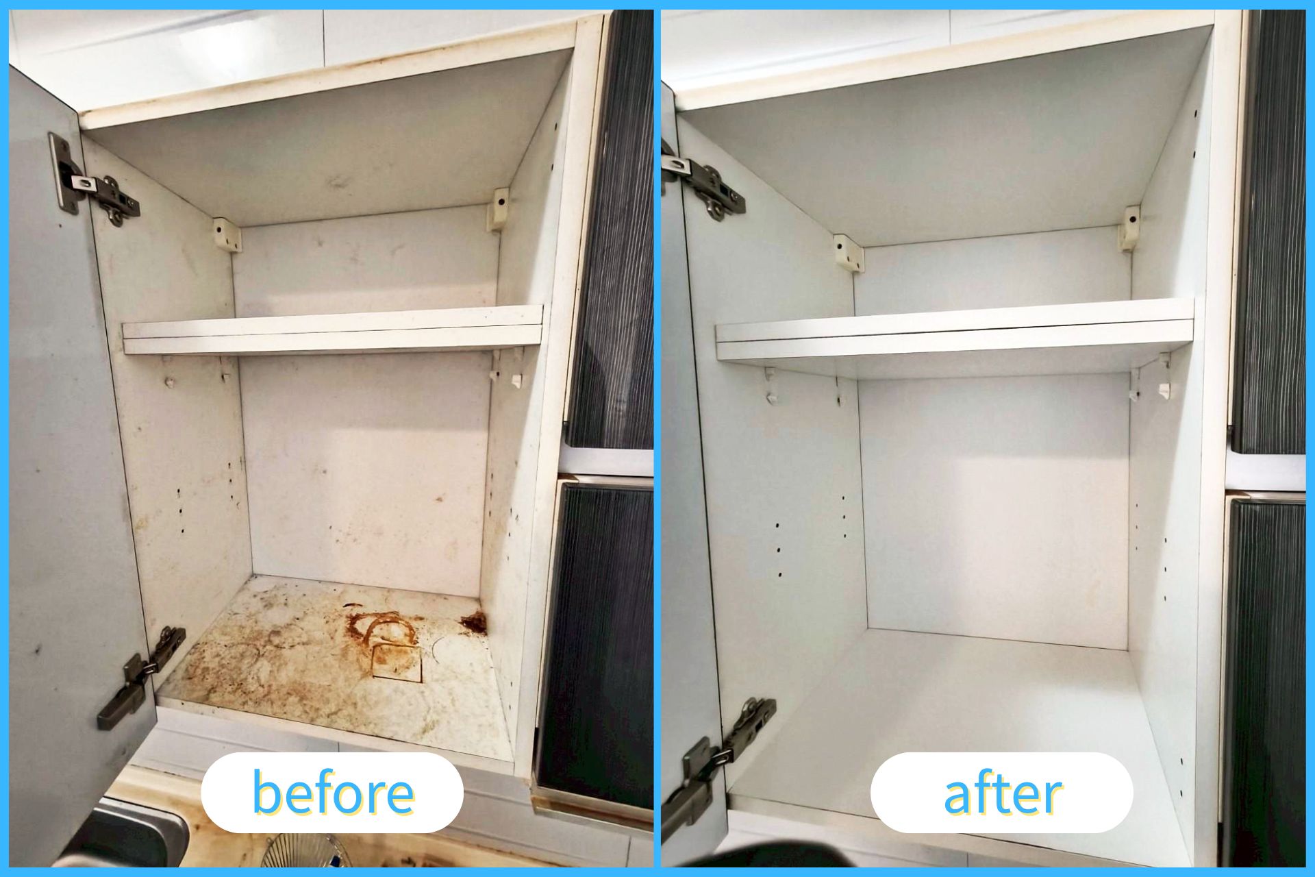 ▼不過看到原本發黃發黑的廚具、牆面跟櫃子,被清到接近白色,我們全家真的很感動!!