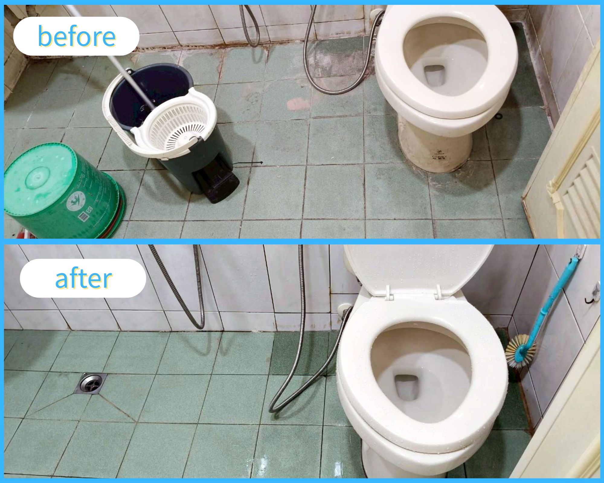 ▼一樓廁所是舊裝潢,但也是水垢、尿垢滿滿,掃完後整個亮起來,我們看了開心多了,尤其是我媽!