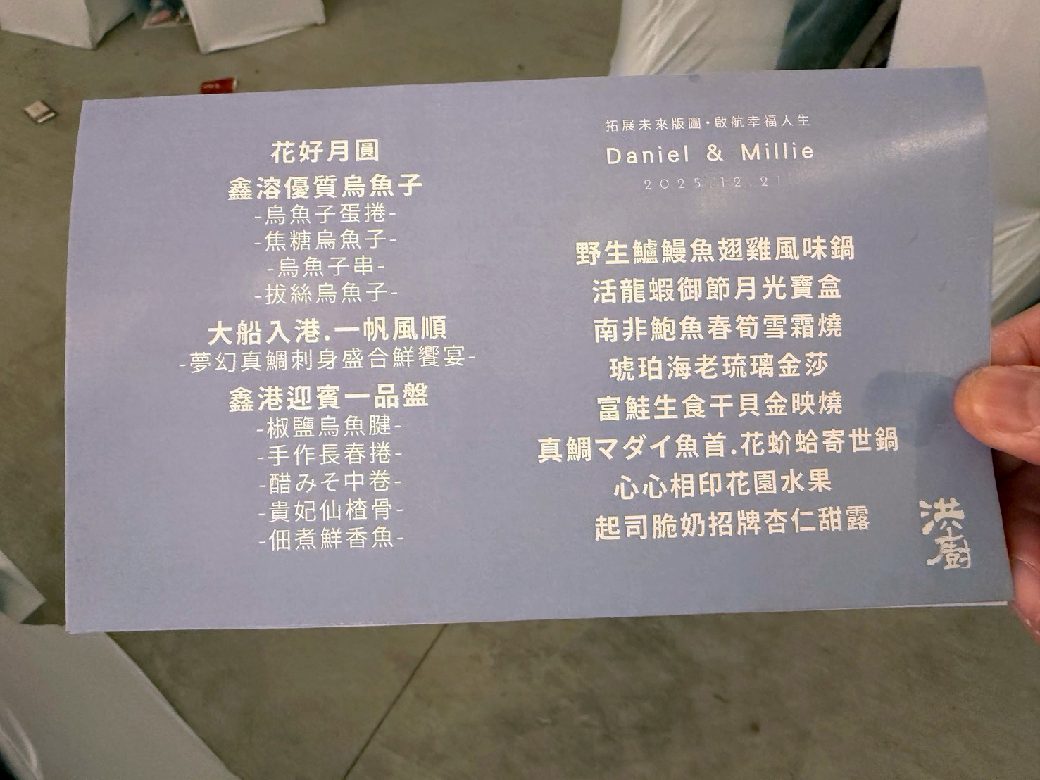 這次辦桌負責的是南部知名的洪廚喜宴,之前有看過其他人分享,整個流程和菜色都很有水準。