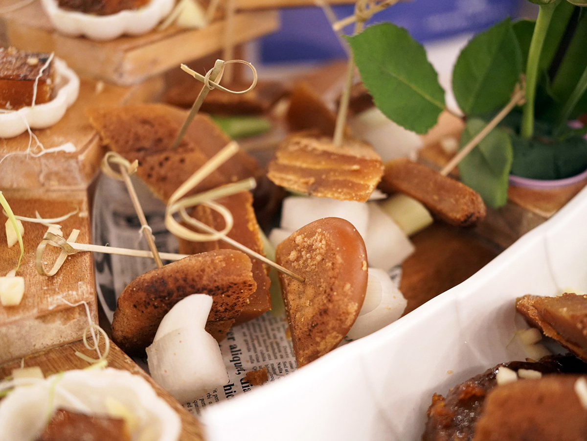 而且還有四種做法:烏魚子蛋捲、焦糖烏魚子、烏魚子串、拔絲烏魚子,直接豪氣全上,根本烏魚子大賞!