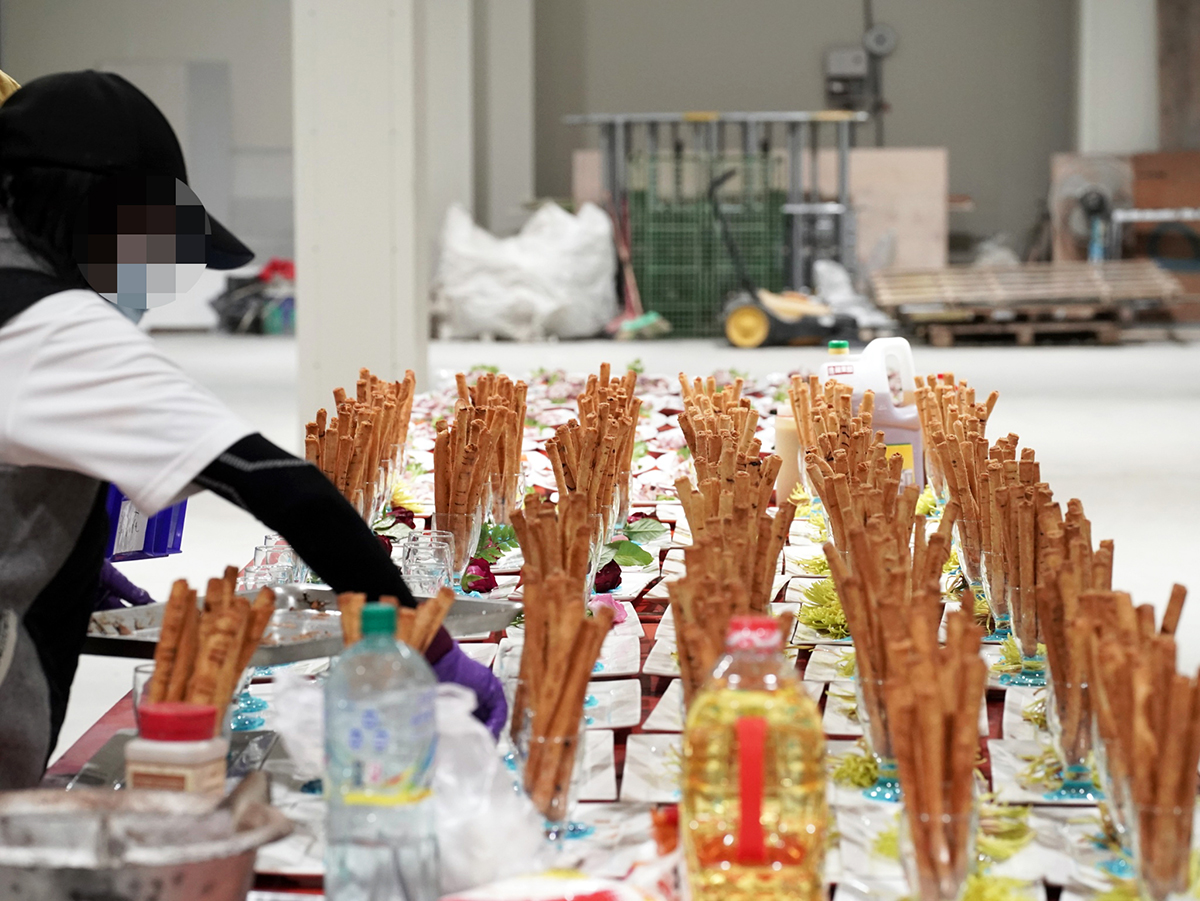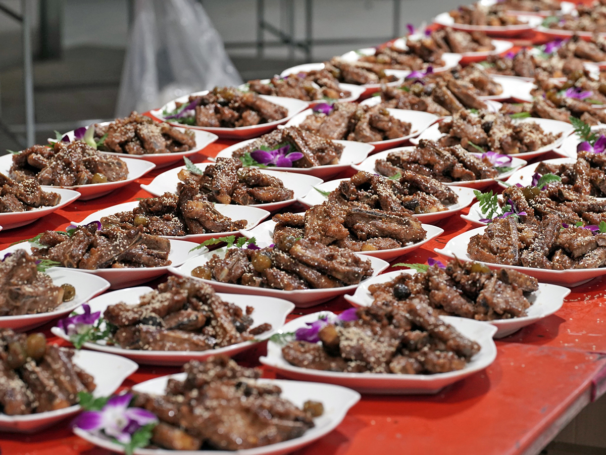 走到後面一看,整排辦桌菜色一字排開,真的很壯觀。
