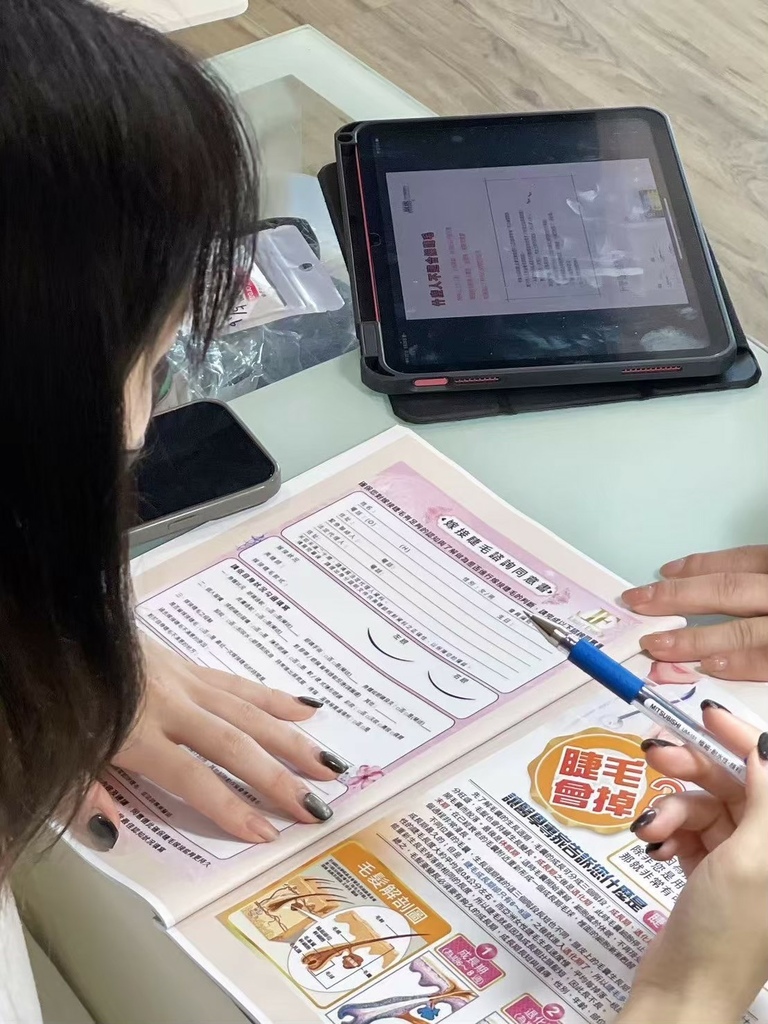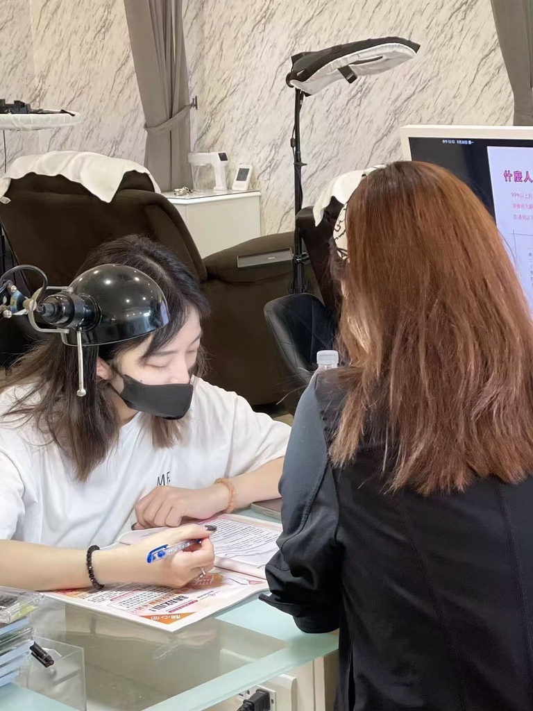 她在這行做了好幾年,也累積了不少熟客。她觀察到一個很有趣的現象:來店裡的客人接睫毛的比例超高,她說現在「變美」是全民運動,特別是來她這邊的熟客,很多都是愛美一族。