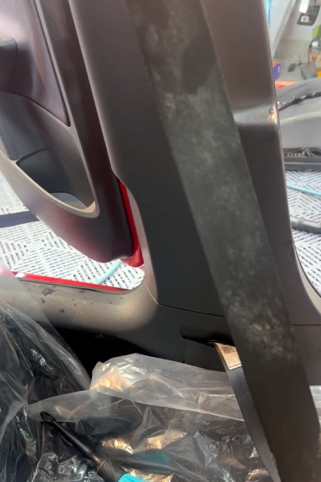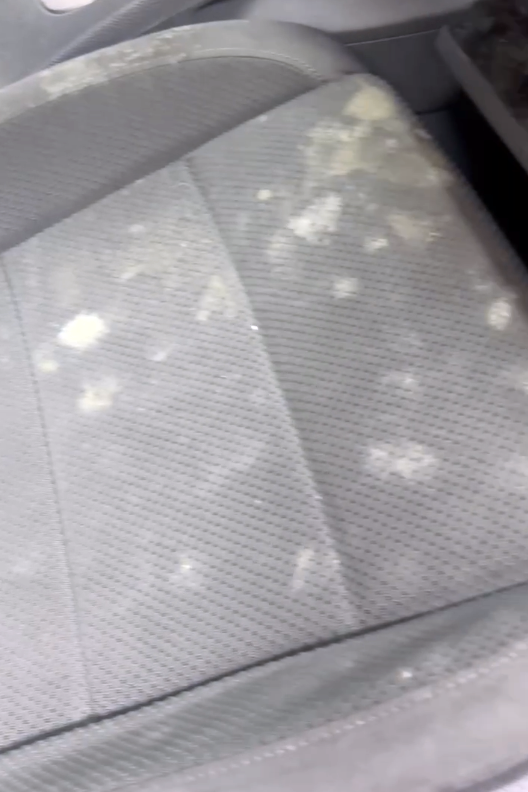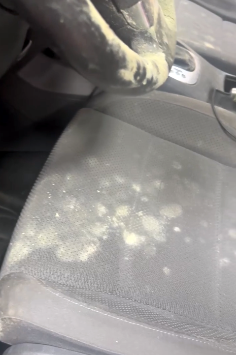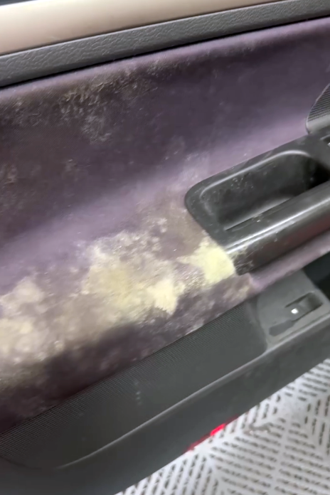 一股潮濕悶臭的味道撲鼻而來,往車內一看整個傻眼!車子竟然生菇了(發霉)!方向盤、座椅、安全帶,全都被白白綠綠的霉菌覆蓋,像是車內在開蕈菇園party…那畫面對我來說比恐怖片還驚悚,當下完全不知道該怎麼處理,只覺得頭皮發麻。