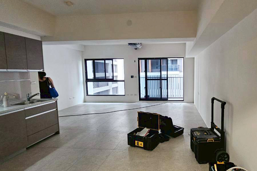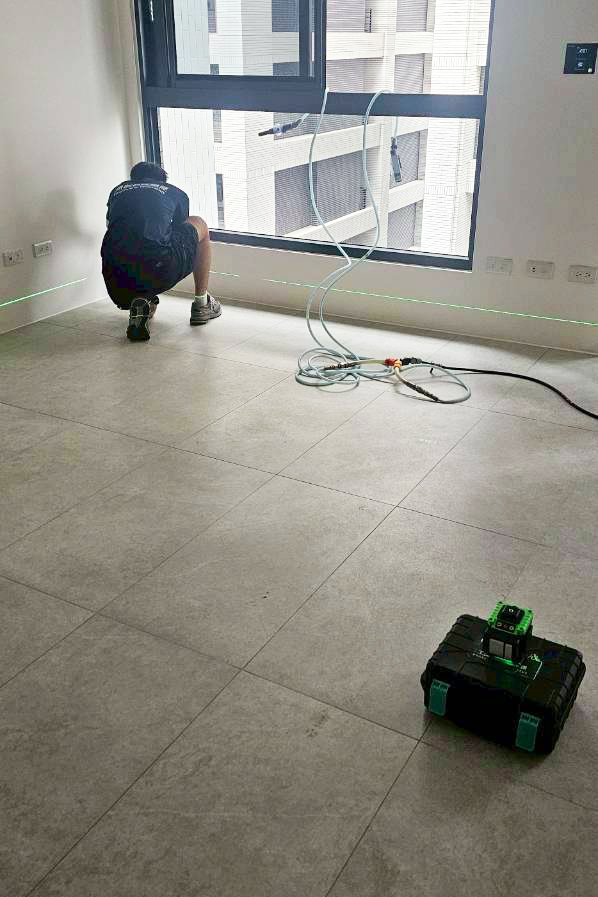 用雷射水平儀仔細測量每個房間的地板平整度,這細節若忽略,家具擺放都可能受影響。