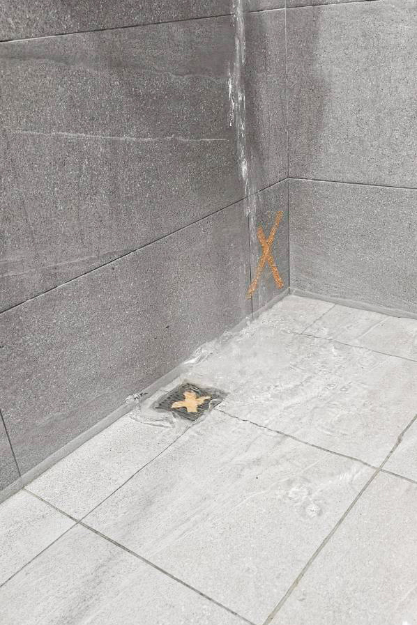 這個測試很實際,驗屋師傅在冷氣排水管和窗框周圍大量澆水,是否有產生滲水問題,這種預防性檢測真的很有價值。