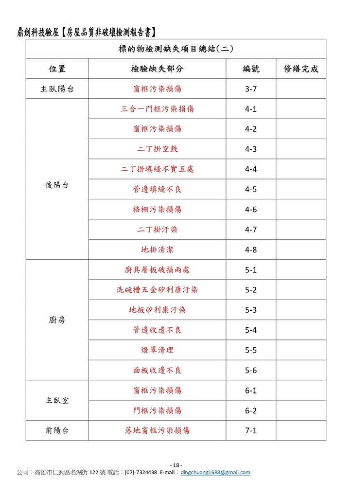 如果你剛買新屋,或是對建商施工品質心裡沒底,我真心推薦找鼎創科技驗屋。